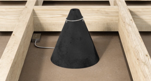 The FF109-200 1 Hour Fire Rated LED Downlight Cover is a cone-shaped intumescent enclosure which has been specifically designed to help maintain the integrity of openings of up to 4” diameter in fire rated ceilings when penetrated by modern low profile LED downlight fixtures.